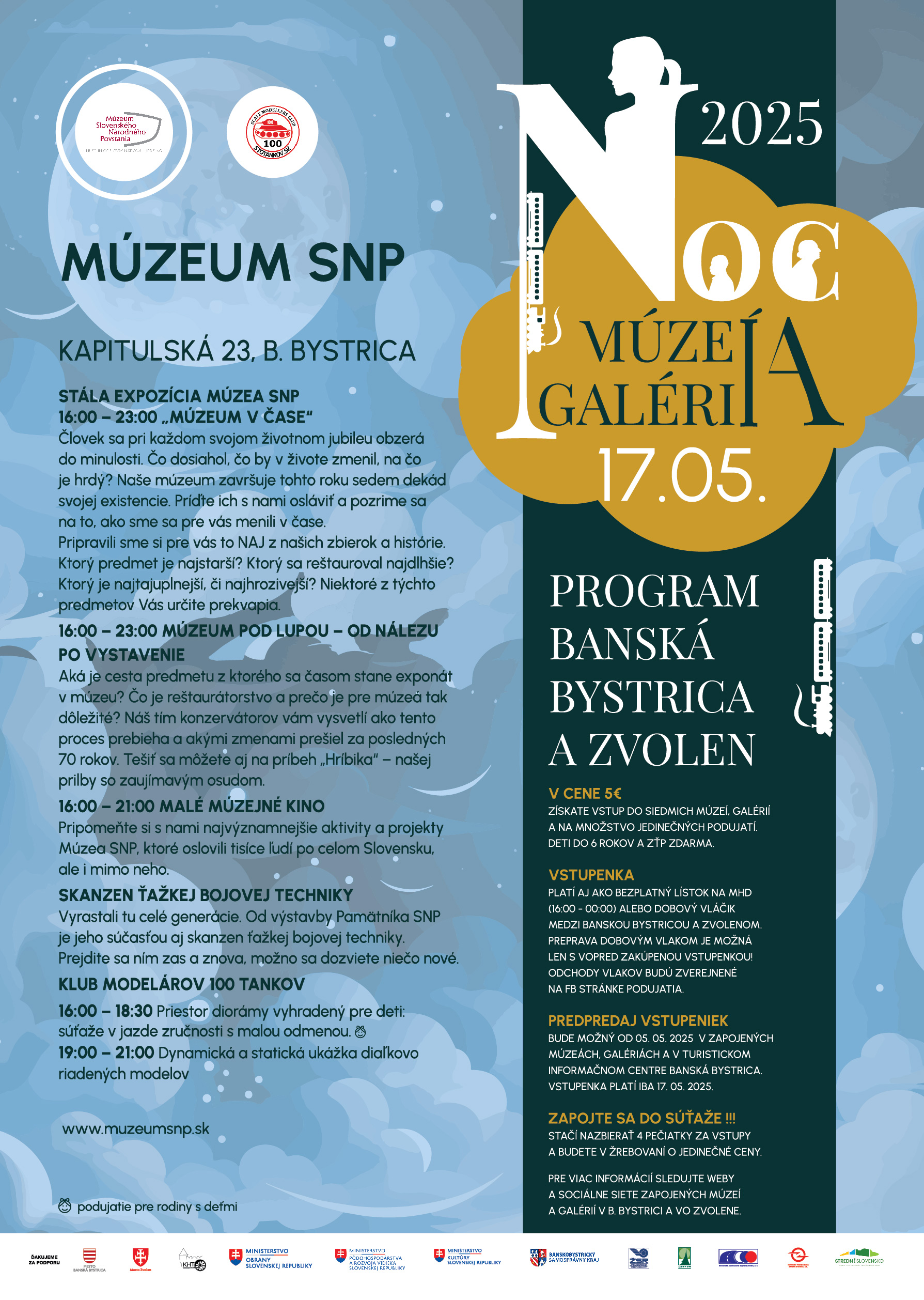 Človek sa pri každom svojom životnom jubileu obzerá do minulosti. Čo dosiahol, čo by v živote zmenil, na čo je hrdý? Naše Múzeum završuje tohto roku sedem dekád svojej existencie. Príďte ich s nami osláviť a pozrime sa na to, ako sme sa pre Vás menili v čase.