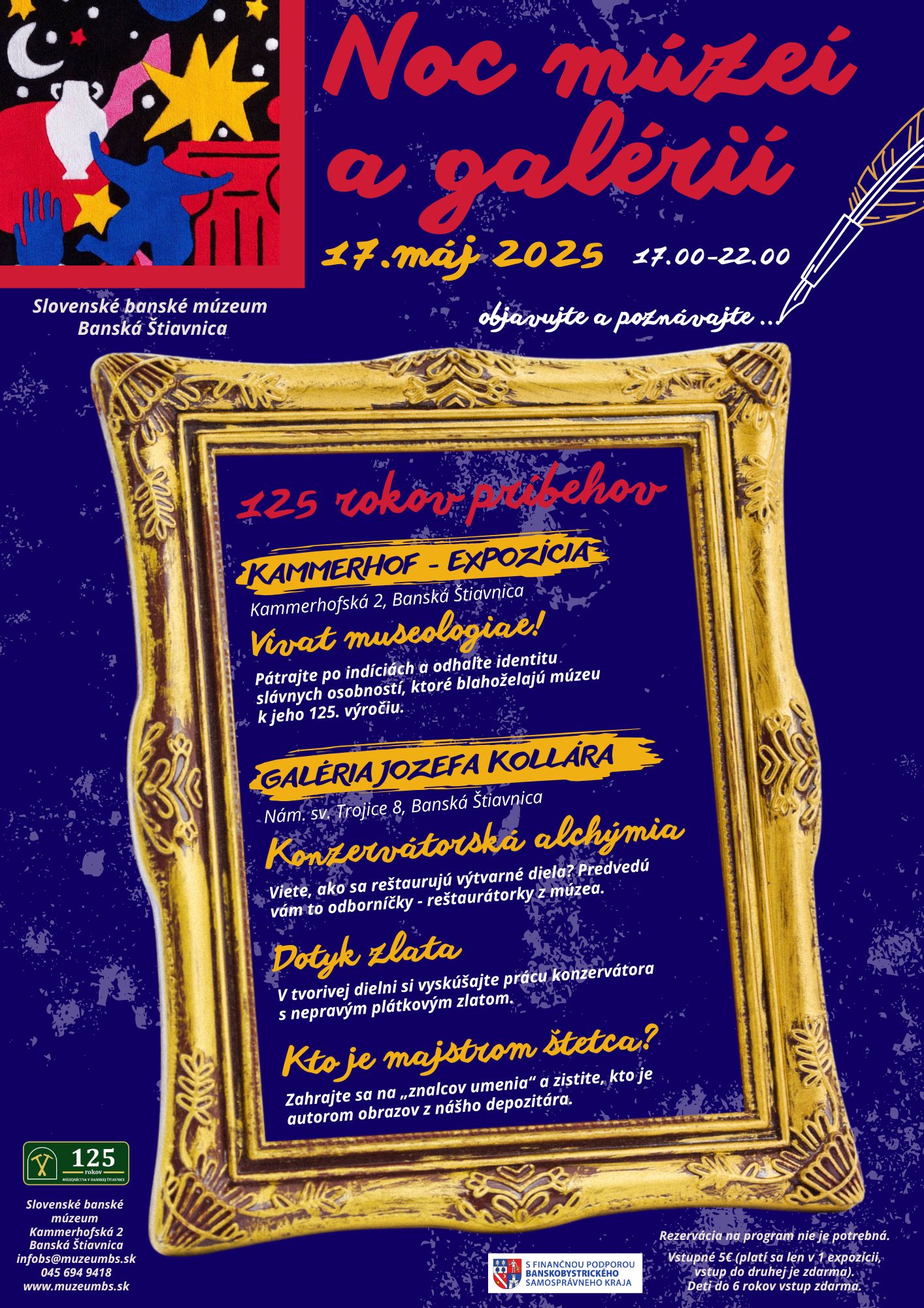 Vstúpte do sveta banskej histórie a oslávte spolu s nami 125. výročie múzejníctva v Banskej Štiavnici. Pripravená je zábavná pátracia hra „Vivat museologiae!“, ktorá vás zavedie po stopách vedcov, umelcov alebo historických osobností, ktoré ovplyvnili vedu či kultúru. Uhádnete, o koho ide? Ich identity budete odhaľovať pomocou hádaniek, indícií a skrytých súvislostí priamo v expozícii.