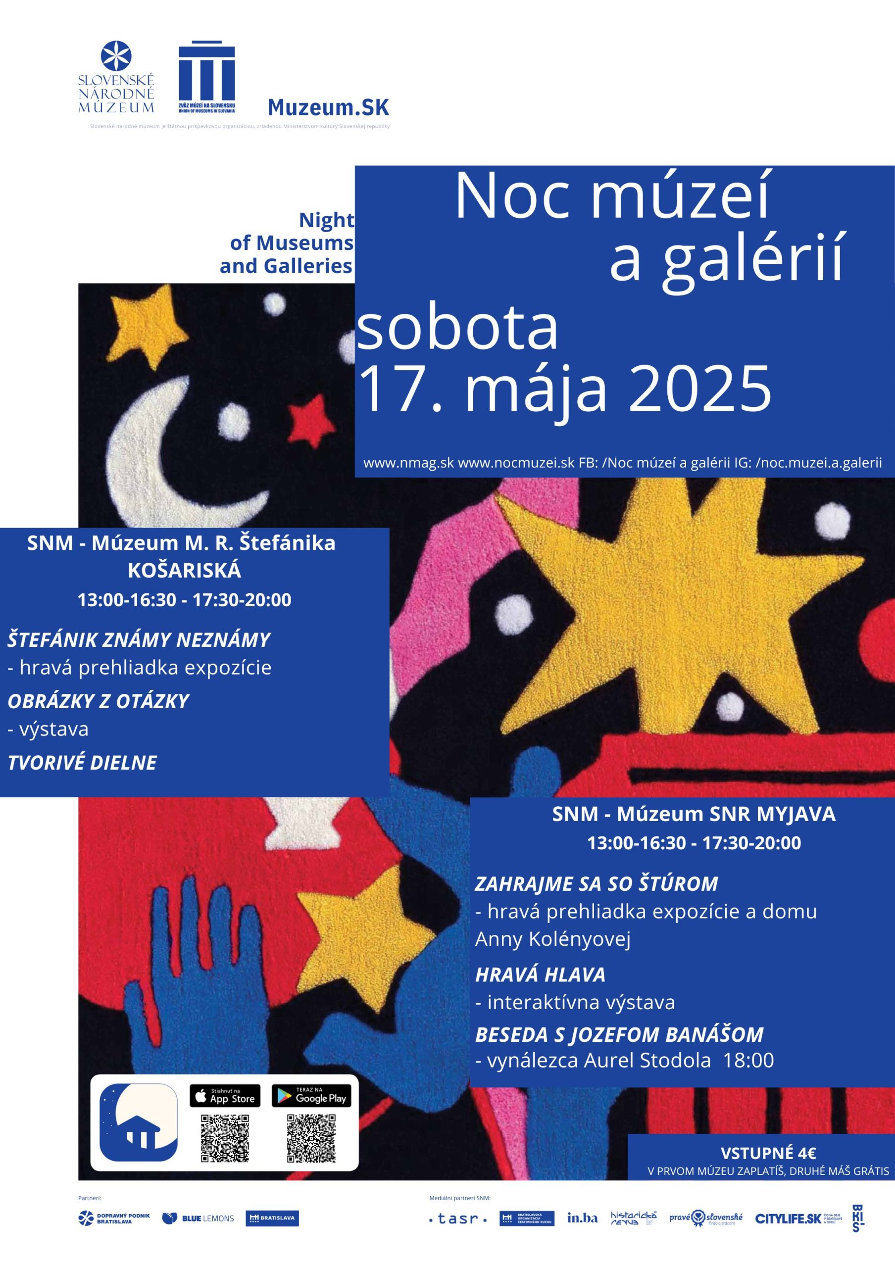 13:00-16:30 - 17:30-20:00 ŠTEFÁNIK ZNÁMY NEZNÁMY - expozíciou Vás hravou formou prevedú tri kľúčové osobnosti zo Štefánikovho života: brat Igor, snúbenica Giuliana a letecký technik Maurice.